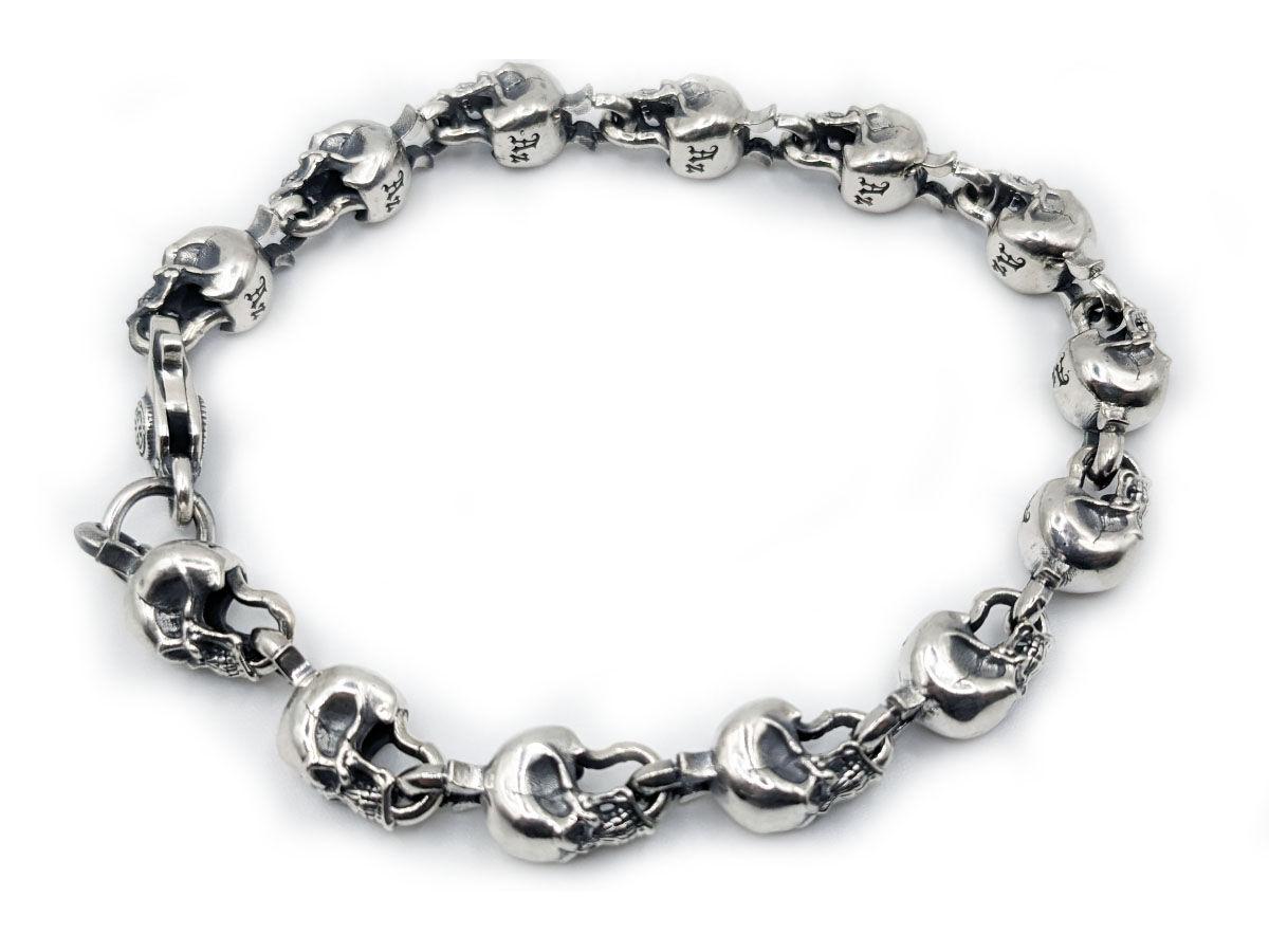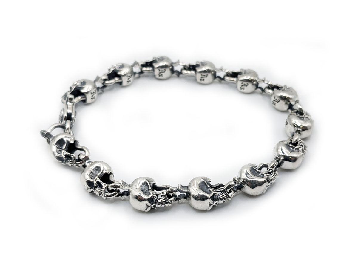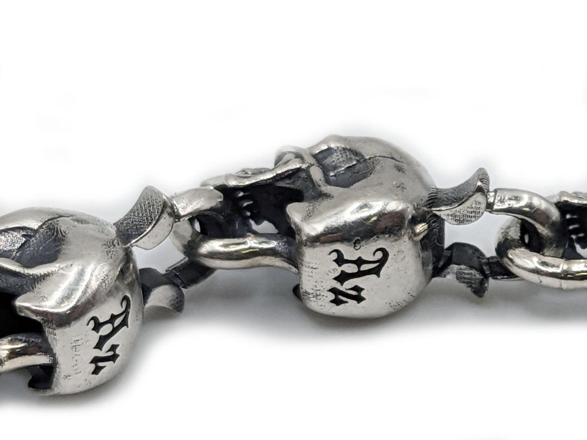 Дизайн браслета украшен искусно выполненными черепами, которые придают ему характер и загадочность. Каждый элемент проработан с вниманием к деталям, что подчеркивает мастерство исполнения. Этот браслет идеально подойдет как для повседневного ношения, так и для особых случаев, добавляя уверенности и харизмы.